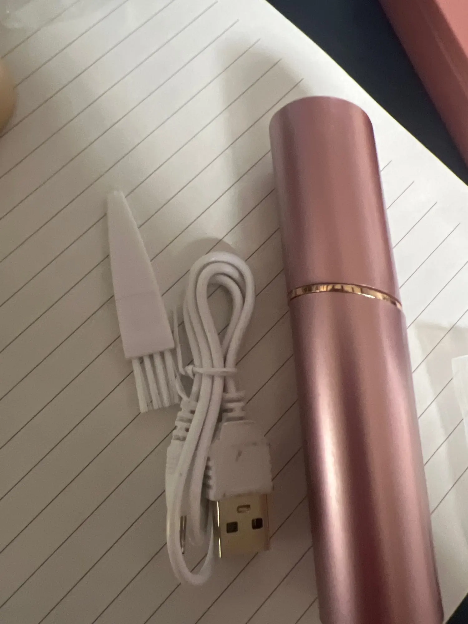 Crafted in soft matte white with rose gold accents, this device is as beautiful as it is functional. Its refined, ergonomic shape fits comfortably in your hand and looks stunning on any vanity or in your travel bag.